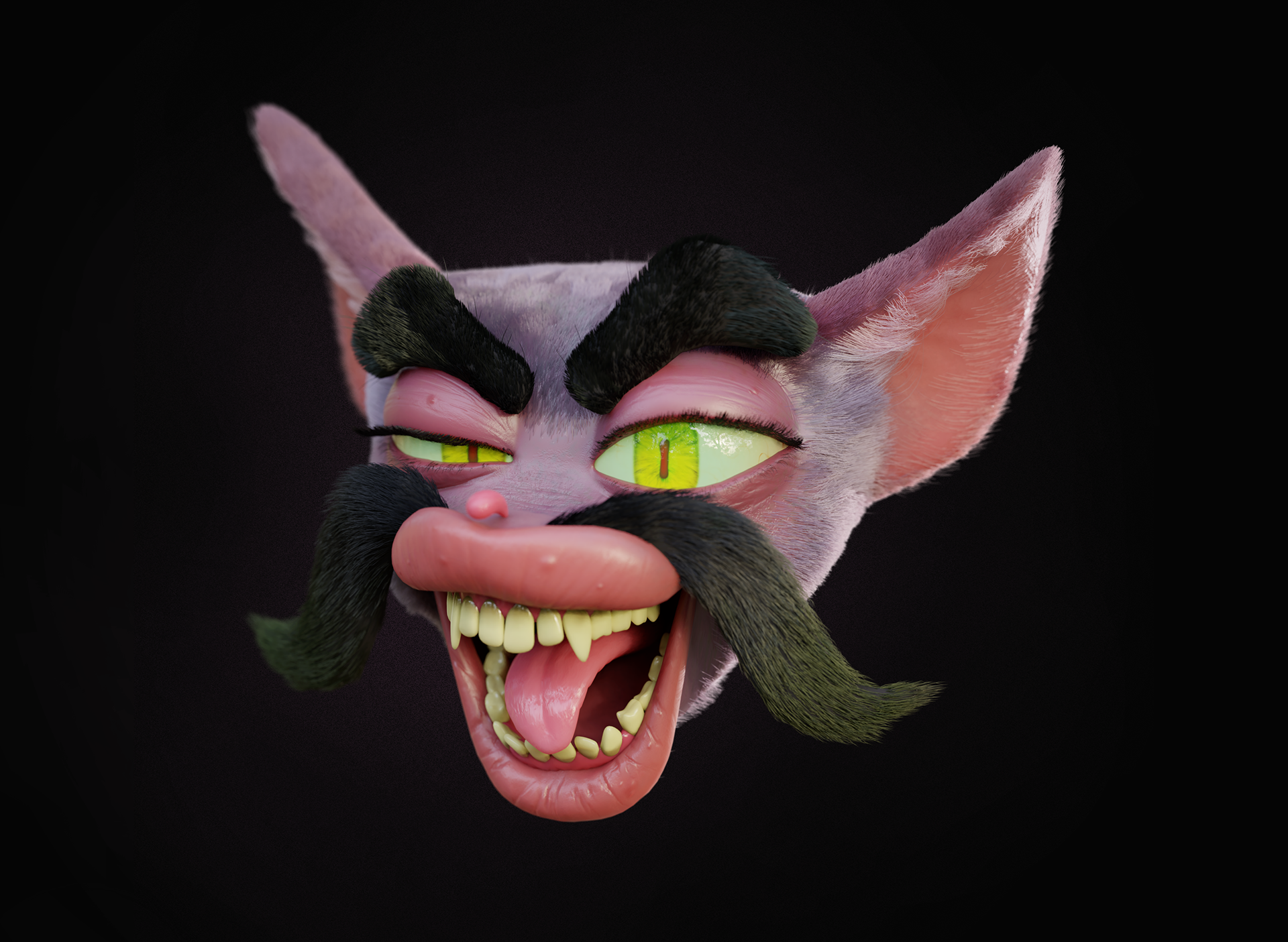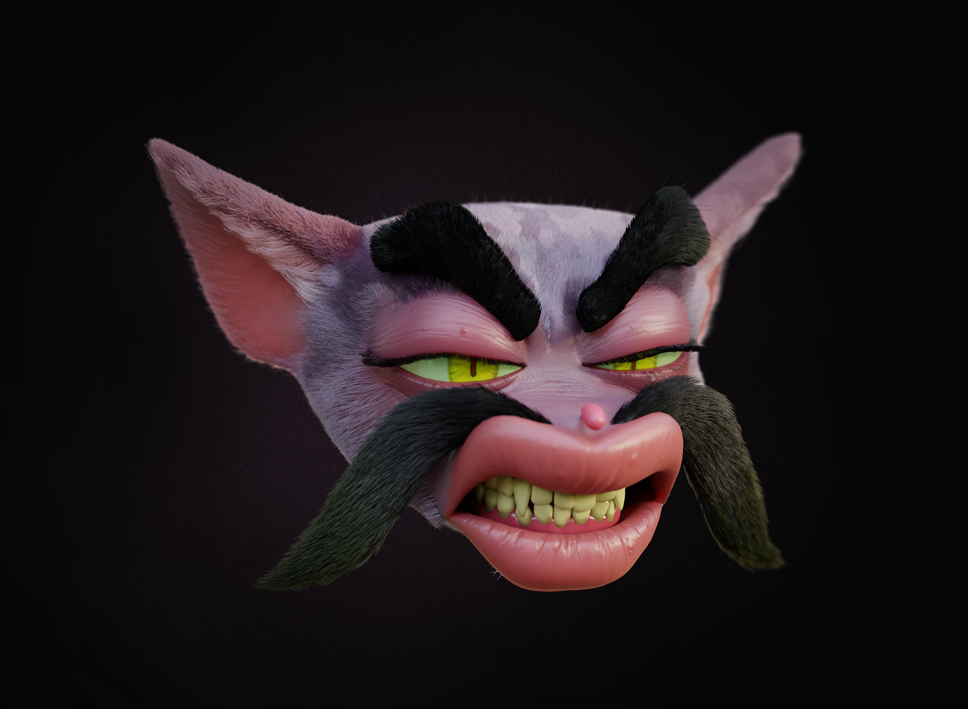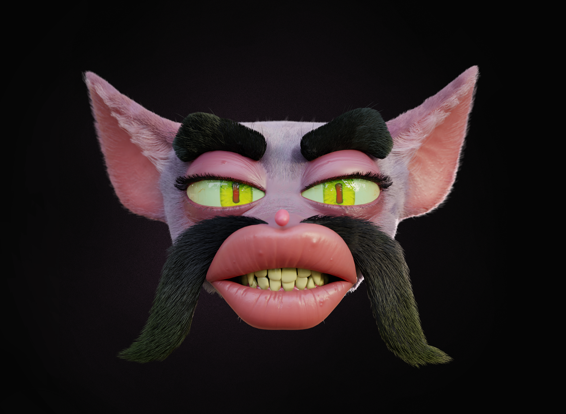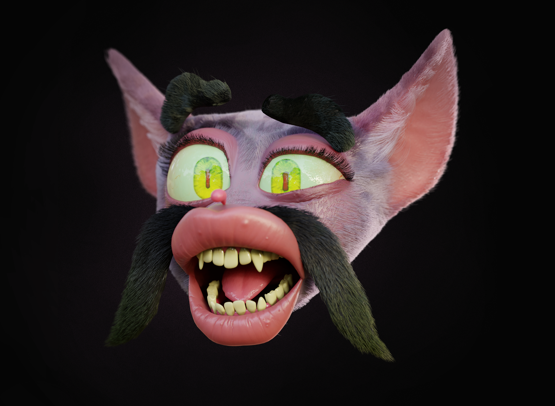 Blender project to teach myself better facial topology and some face rigging/posing. I felt like doing something weird and unique so I started from a sketch made on my phone in the middle of the night